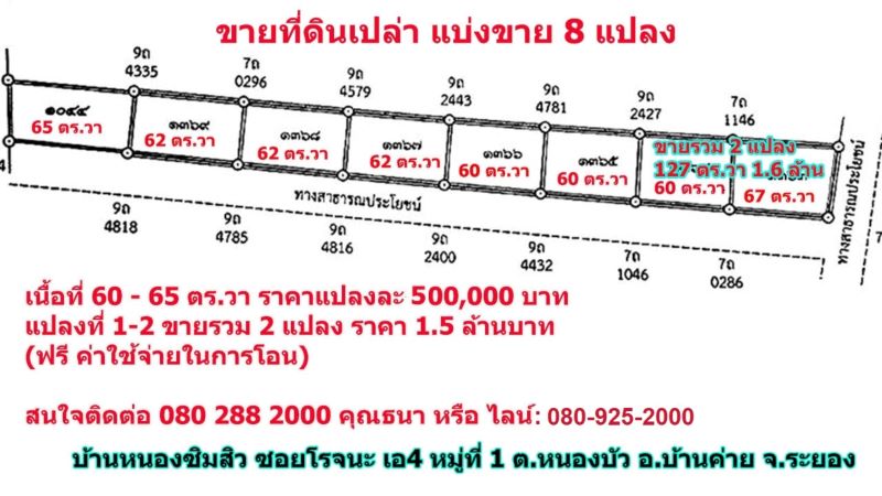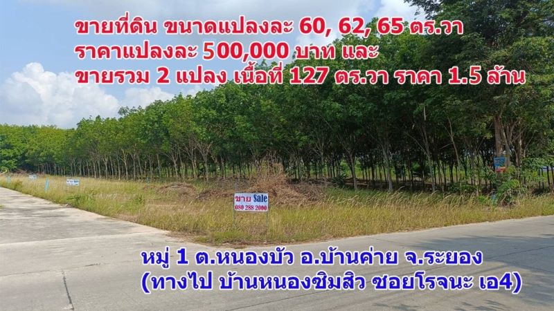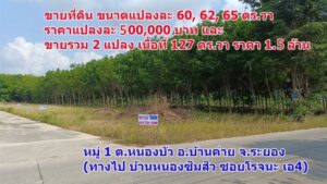 (ny06) ขายที่ดินเปล่า ขนาด 60, 62, 65 ตร.วา ราคาแปลงละ 500,000 บาท และ ที่ดินขายรวม 2 แปลง เนื้อที่ 127 ตร.วา ราคา 1.5 ล้านบาท