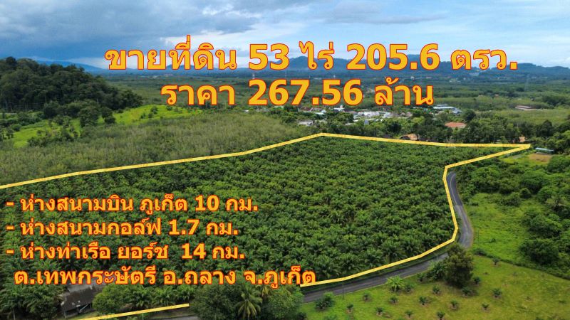 (pk14) ขายที่ดินแปลงใหญ่ 53 ไร่ 205.6 ตารางวา ราคา 267.56 ล้านบาท หรือ ราคาไร่ละ 5 ล้านบาท ต.เทพกระษัตรี อ.ถลาง จ.ภูเก็ต l นารา แอสเสท 080-288-2000