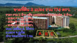 ขายที่ดินรวม 3 โฉนด เนื้อที่รวม 174.8 ตรว. ราคาขายรวม 6 ล้านบาท หรือเลือกซื้อแบบแบ่งขาย: