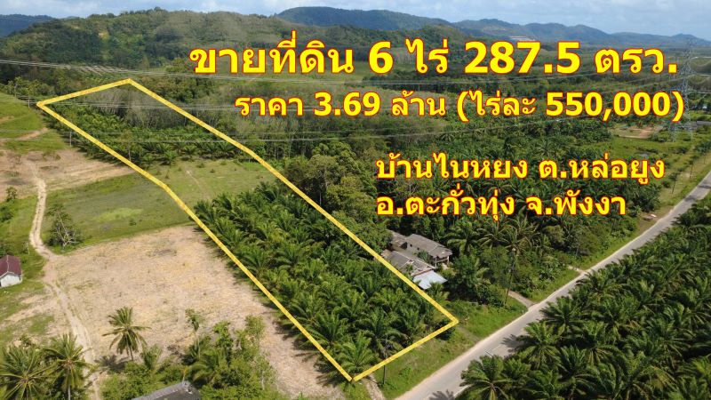 ขายที่ดิน 6 ไร่ 287.5 ตารางวา ราคา 3.69 ล้าน (ไร่ละ 550,000 บาท) บ้านไนหยง ต.หล่อยูง อ.ตะกั่วทุ่ง จ.พังงา l นารา แอสเสท 080-288-2000 ( อังกฤษ และ จีน ) https://www.53re.com/about/