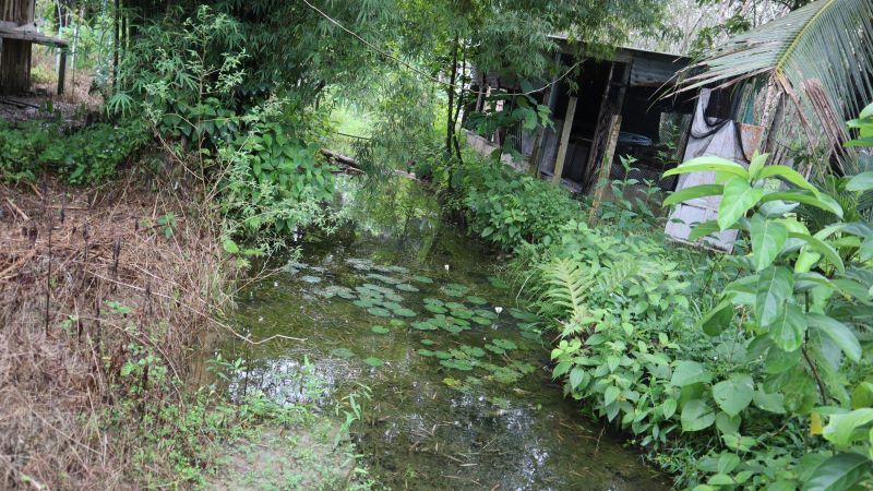 ที่ดินล้อมรั้วเรียบร้อย มีคลองน้ำธรรมชาติไหลผ่านหน้าบ้าน