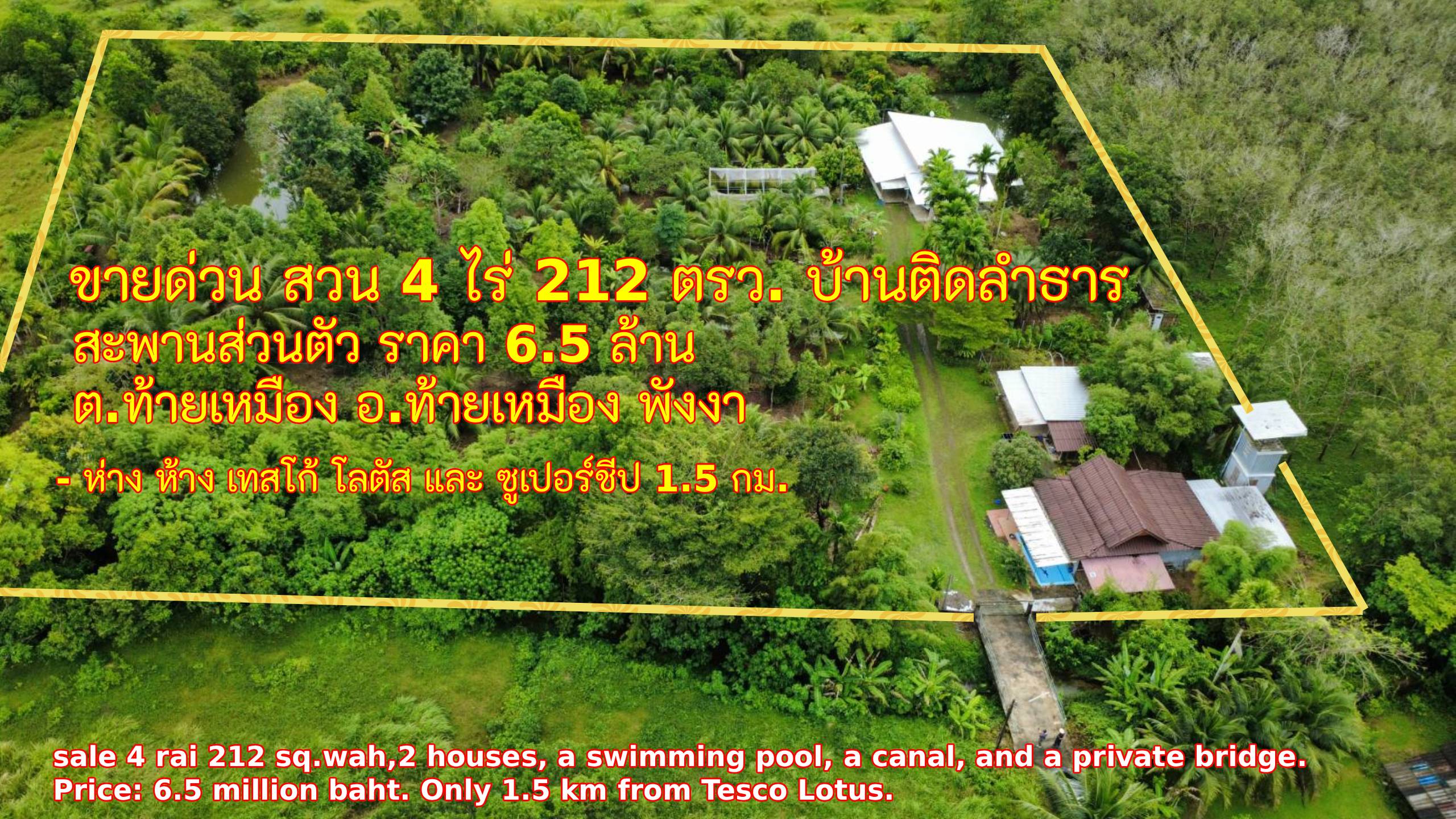 (png17) ขายที่ดินสวนผลไม้ 4 ไร่ 212 ตรว. ติดลำธาร พร้อมบ้าน 2 หลัง สระว่ายน้ำ สะพานเข้าบ้านส่วนตัว ราคา 6.5 ล้าน อ.ท้ายเหมือง ต.ท้ายเหมือง จ.พังงา l นารา แอสเสท 080-288-2000